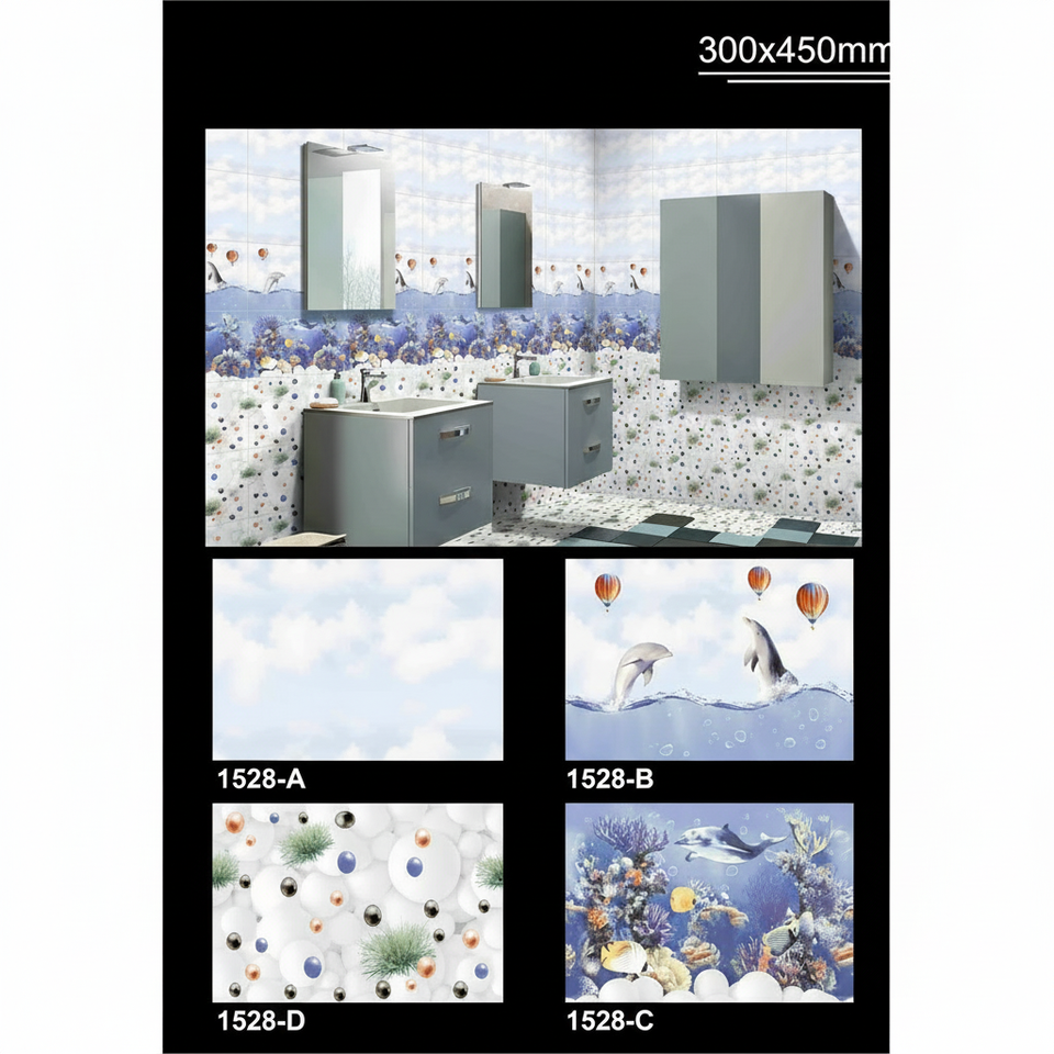 กระเบื้องเซรามิคลายชีวิตทะเล30x45ซม. ตกแต่งรูปภาพปลาเคลือบเงามันเหมาะสำหรับห้องน้ำขนาด300X450มม.