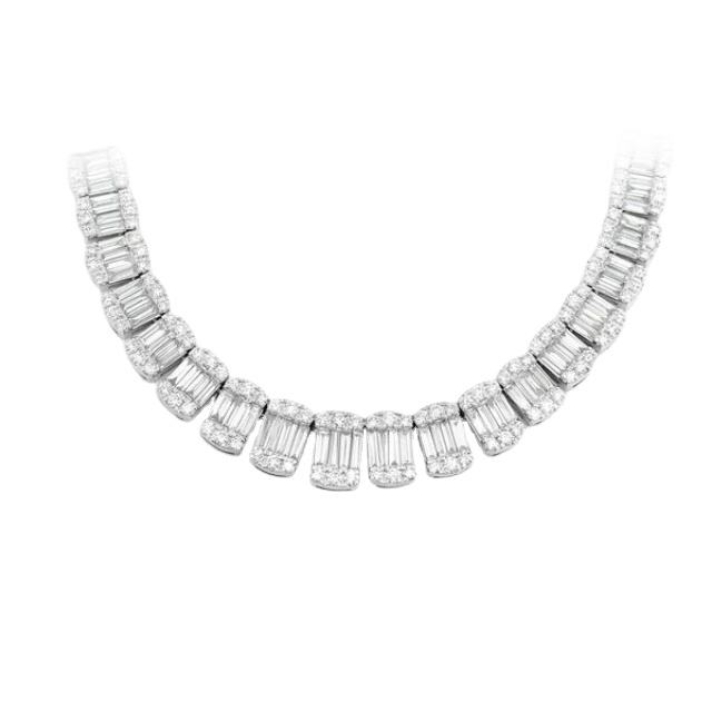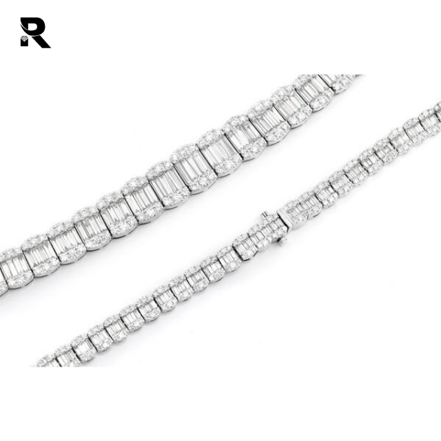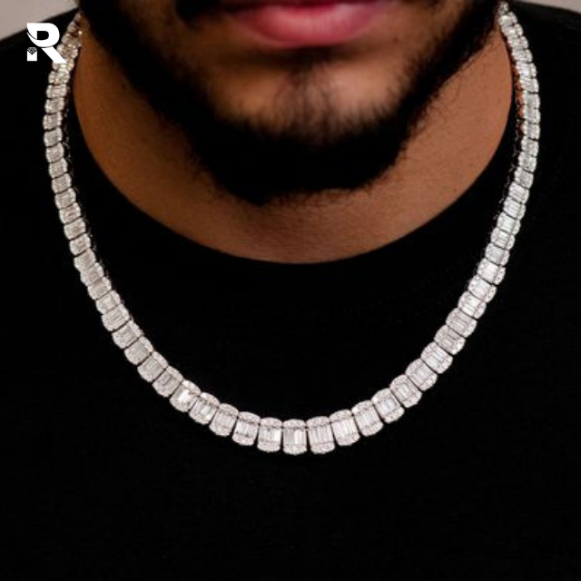 31.25ctw ปริญญาบากูเอตต์รูปไข่ Link สร้อยคอทองสําหรับของขวัญผู้ชาย 14K สร้อยคอบรรจุที่กําหนดเองเพชรเงินสเตอร์ลิง IGI