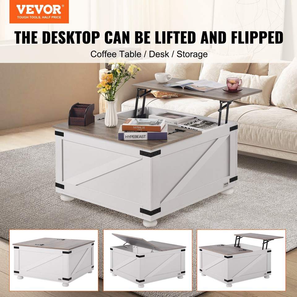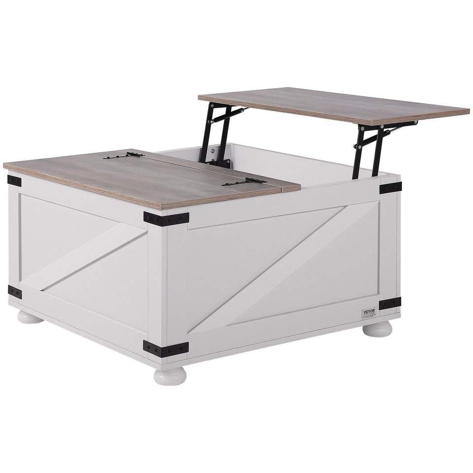 31.5\" Farmhouse-Style Lift Top Coffee Table Storage Compartment Square Wooden Rustic Cocktail Table for Living Room Bedroom