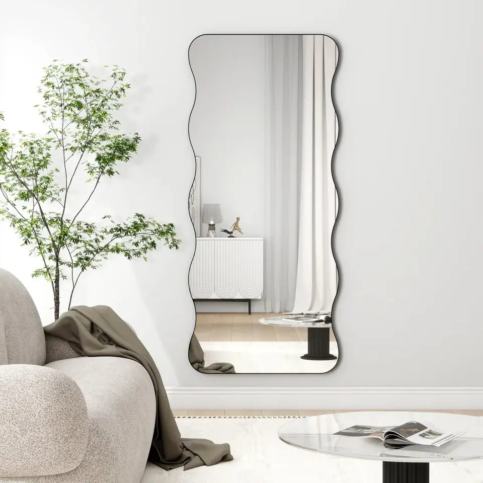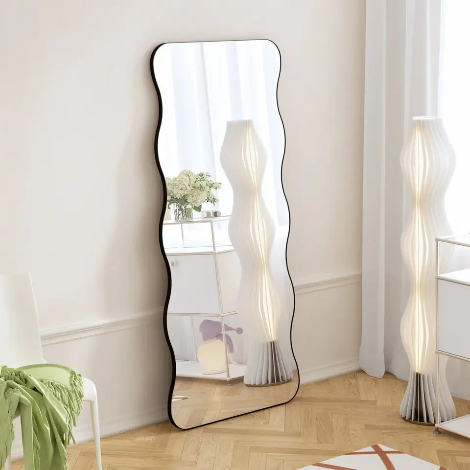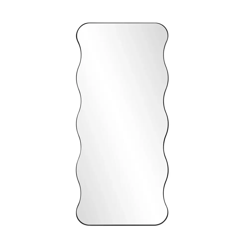 กระจกแต่งตัวเต็มตัวทรงโมเดิร์น ทำด้วยมือ กรอบอะลูมิเนียมสีดำลายคลื่น ขนาด 31.5 นิ้ว x 1 นิ้ว x 70.8 นิ้ว