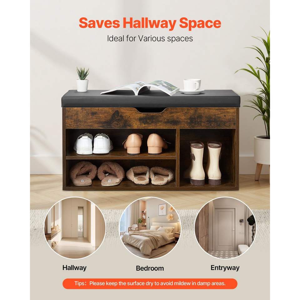 ม้านั่งเก็บรองเท้าสำหรับทางเข้าบ้าน ขนาด 31.7 x 12.0 x 17.5 นิ้ว รับน้ำหนักได้ 300 ปอนด์ พร้อมเบาะนั่งแบบมีที่เก็บของด้านบน รับน้ำหนักได้ 300 ปอนด์ พร้อมเบาะนั่งและที่จัดเก็บ