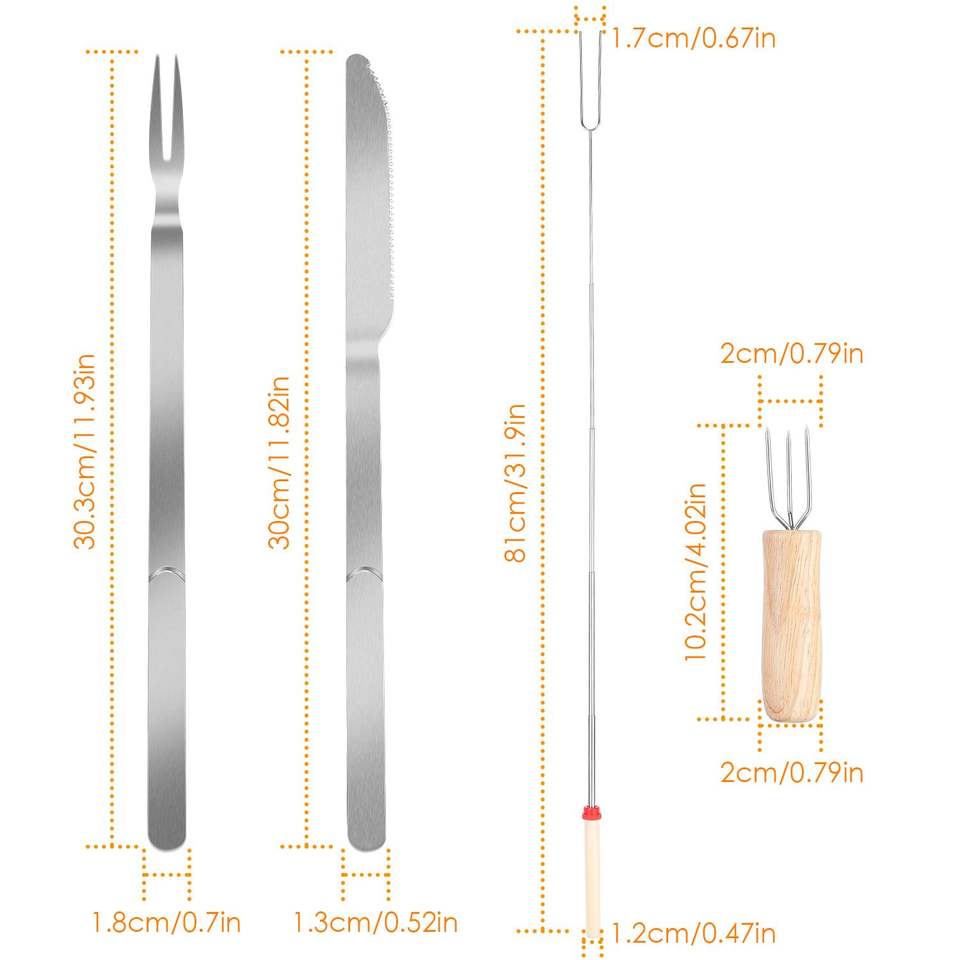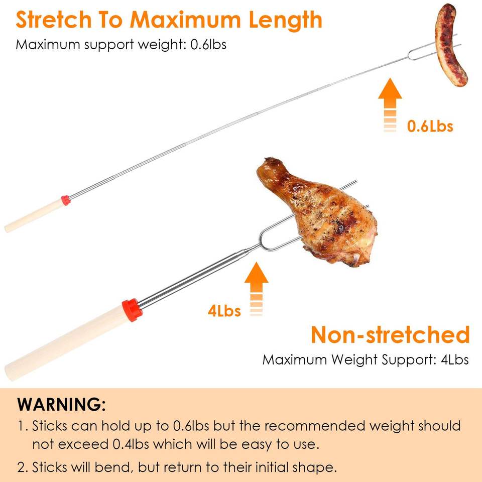 ชุดไม้เสียบมาร์ชเมลโลว์แบบยืดหดได้ 31.9 นิ้ว ทำจากสแตนเลส สำหรับย่างบาร์บีคิว ใช้งานสะดวกและทนทาน