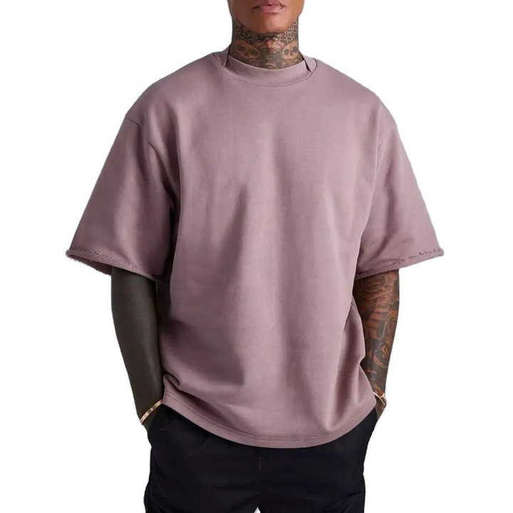 เสื้อยืดผู้ชายทรงโอเวอร์ไซส์ ผ้าโพลีเอสเตอร์ 100% หนัก 310 กรัม สไตล์วินเทจ คุณภาพสูง แขนสั้น ทรงหลวม พิมพ์ลายโลโก้ด้านหน้า