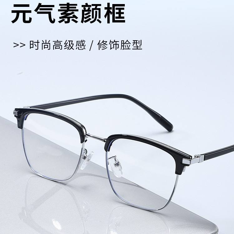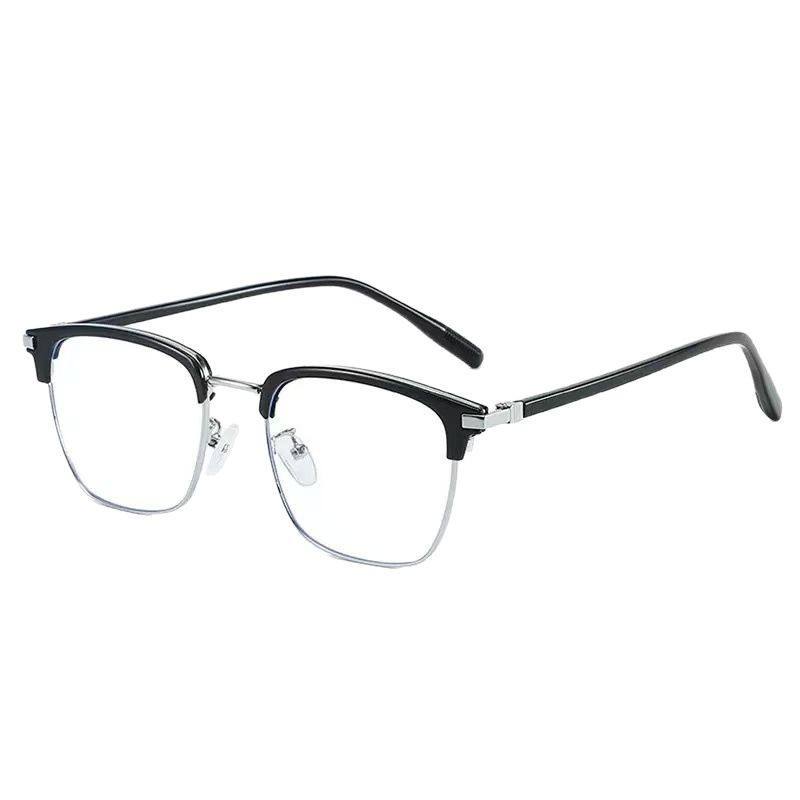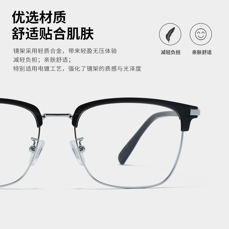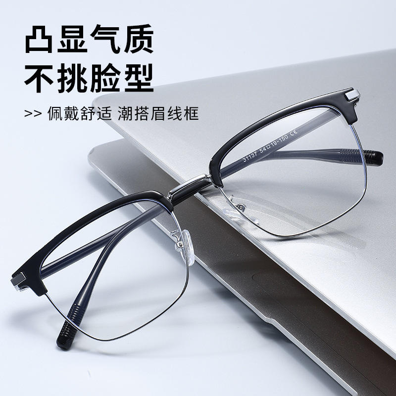 31137 กรอบแว่นตาทรงสี่เหลี่ยมครึ่งกรอบสำหรับผู้ชาย เลนส์โลหะ PC ป้องกันรังสียูวีอเนกประสงค์สำหรับการมองเห็นระยะไกลและระยะใกล้