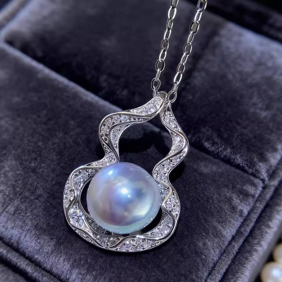 จี้เงินแท้ S925 รุ่น 31357DIY พร้อมฐานเปล่าทรงน้ำเต้า สำหรับสร้อยคอ ใส่ลูกปัดกลมขนาด 6-8 มม. อุปกรณ์เสริมสำหรับจี้มุกและชาร์ม