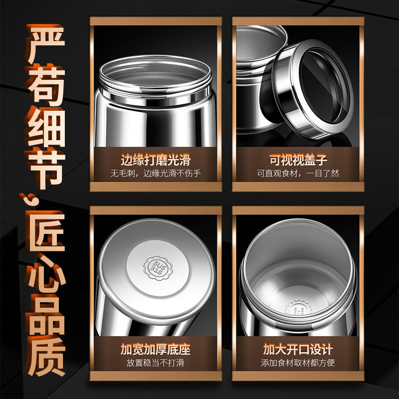 316 โถเก็บเมล็ดกาแฟสแตนเลสฝาปิดโปร่งใสแบบสุญญากาศแบบพกพาภาชนะเก็บรักษาอาหารในครัวเรือน