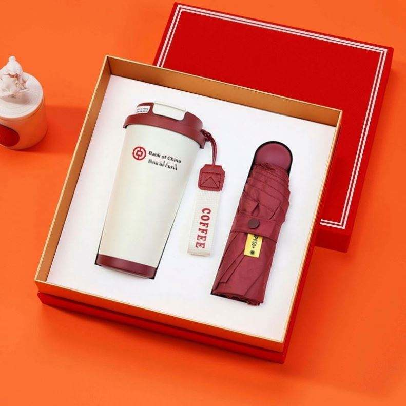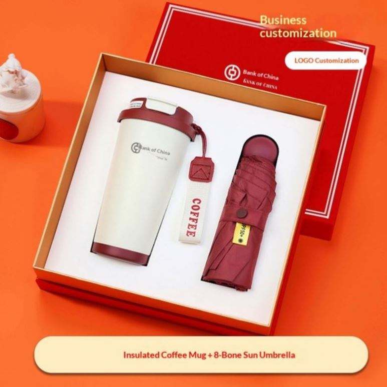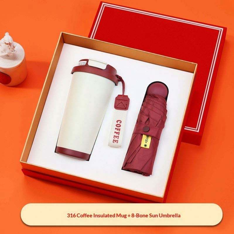 เลือกเลยสี: แก้วกาแฟ + ร่ม 8 ก้าน + กล่องของขวัญสีแดง & ถุงของขวัญ