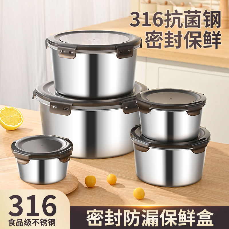 ภาชนะเก็บอาหารสแตนเลส 316 กล่องอาหารกลางวันฝาปิดแบบกลมสำหรับพนักงานออฟฟิศชามซุป