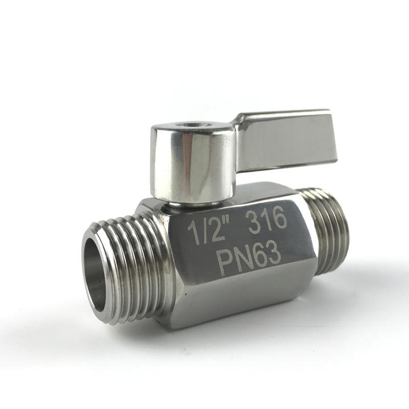 วาล์วบอลขนาดเล็กสแตนเลส 316 ขนาด 1/2 นิ้ว เกลียวตัวผู้ แบบชิ้นเดียว สำหรับน้ำและก๊าซอันตราย