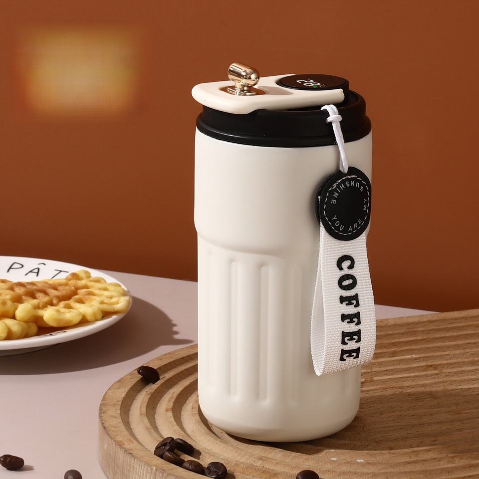 กระติกน้ำร้อนสแตนเลส 316 พร้อมหน้าจอแสดงอุณหภูมิ ลายแนวตั้ง แก้วกาแฟรักษ์โลก คลาสสิก เหมาะสำหรับแคมป์ปิ้ง บรรจุในกล่องของขวัญ