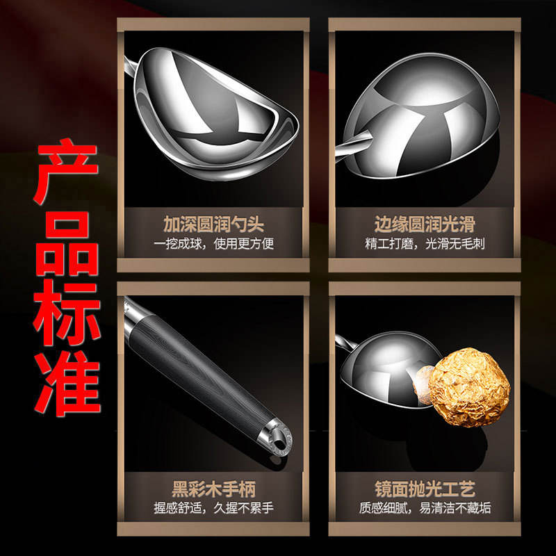 ช้อนไอศกรีมไม้สีขาวดำ สแตนเลส 316L