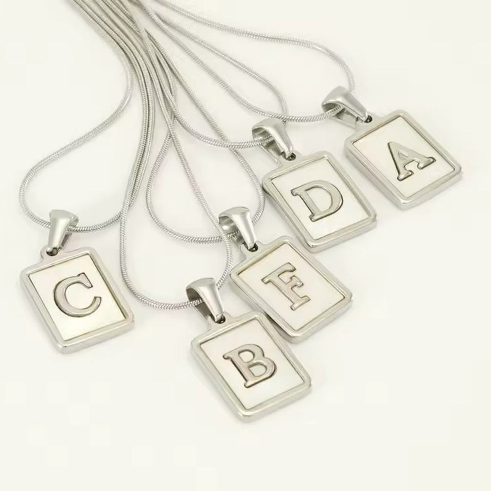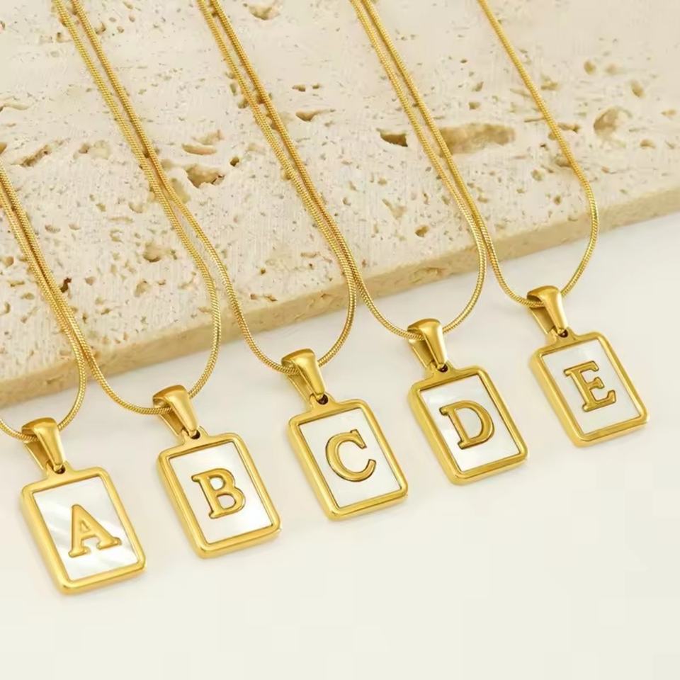 สร้อยคอสแตนเลสสตีล 316L พร้อมจี้ตัวอักษรประดับมุกทรงสี่เหลี่ยมสำหรับผู้หญิง สายสร้อยแบบเฮอร์ริงโบน ชุบทอง 18K เครื่องประดับแฟชั่น