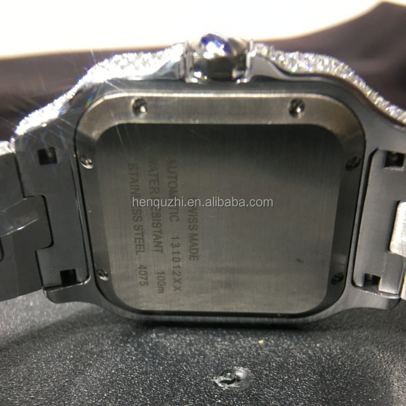 นาฬิกาข้อมือสปอร์ตทรงสี่เหลี่ยม สไตล์ฮิปฮอป ตัวเรือนสแตนเลสสตีล 316L ประดับโมอิสซาไนต์ ระบบอัตโนมัติ กระจกแซฟไฟร์ หน้าปัดอนาล็อก