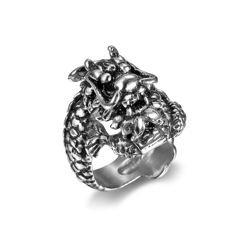 แหวนสแตนเลสสตีล 316L สไตล์พังก์สำหรับผู้ชาย ลายสัตว์ ชุบทอง 18K สีดำ ลายสิงโต จระเข้ มังกร หมาป่า ขายส่ง