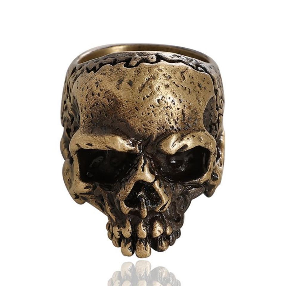 แหวนสแตนเลสสตีล 316L ชุบทองคำสีกุหลาบ ลายหัวกะโหลกสไตล์ไบค์เกอร์ สำหรับผู้ชาย ขายส่ง สไตล์โกธิค พังก์ ย้อนยุค ลายเขาสัตว์ วินเทจ MC