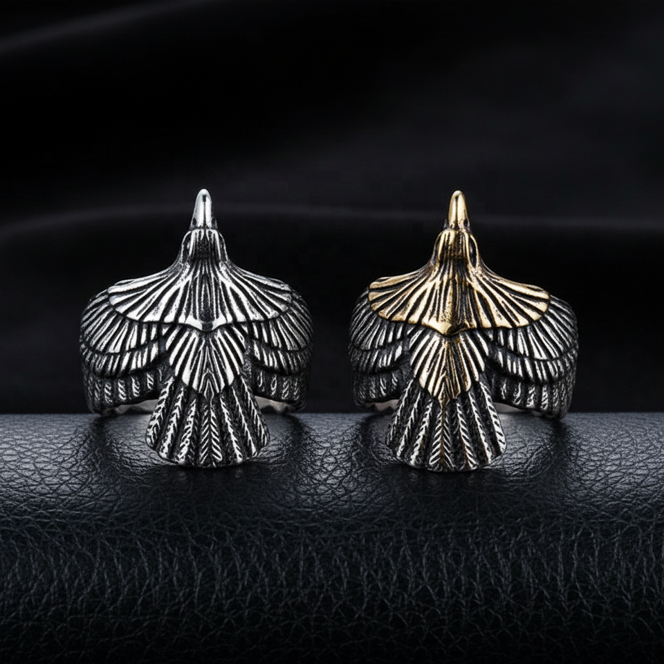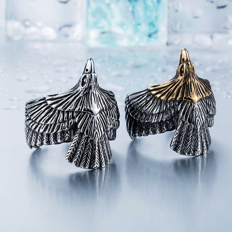 แหวนรูปนกอินทรีสองสี ยี่ห้อ Yunnique ทำจากสแตนเลสสตีล 316L สำหรับผู้ชาย สีเงินโบราณ-สีทอง ดีไซน์โดดเด่น แนวเรเบลลิส ไบค์เกอร์ พังก์ กอธิค