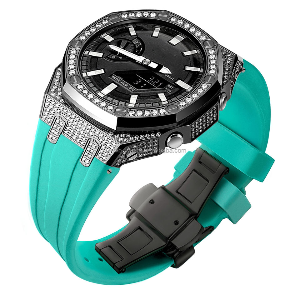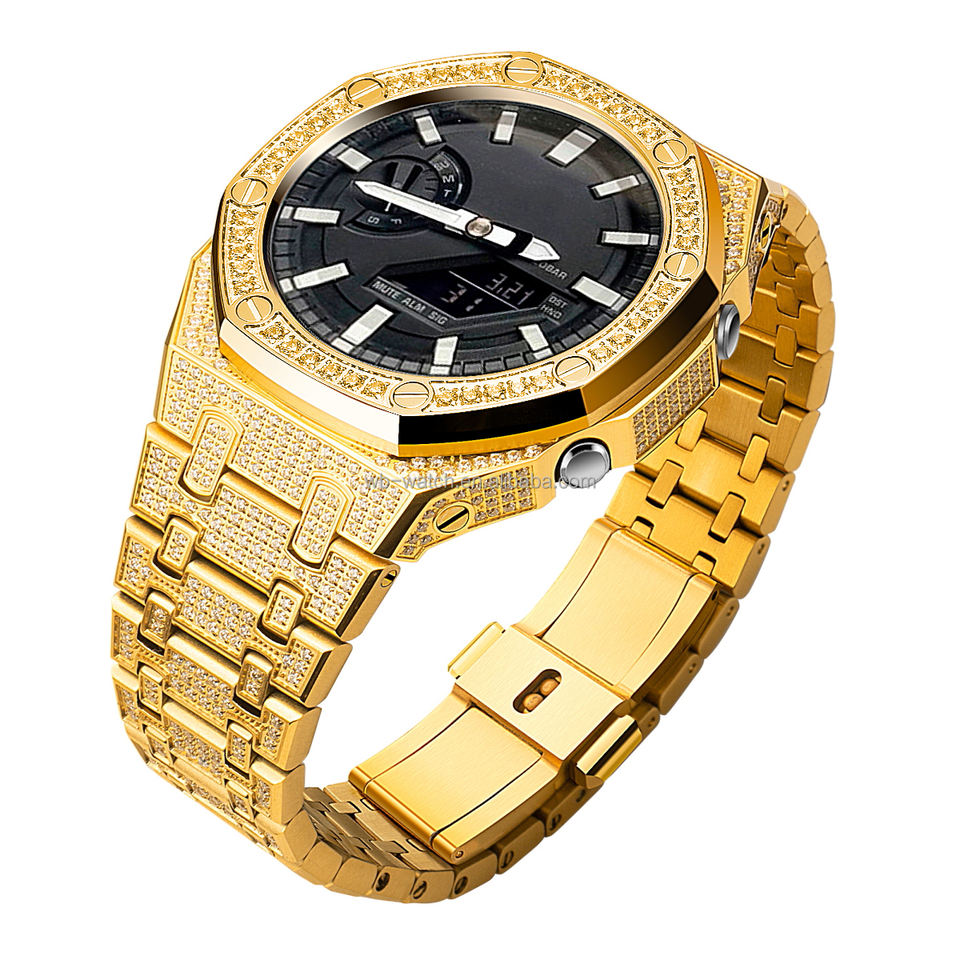 นาฬิกาเหล็ก316L สำหรับ casiaok G SHOCK Ga2100 Ga2110ชิ้นส่วนเคสสายนาฬิกาไม้โอ๊คโลหะประดับเพชรเต็ม