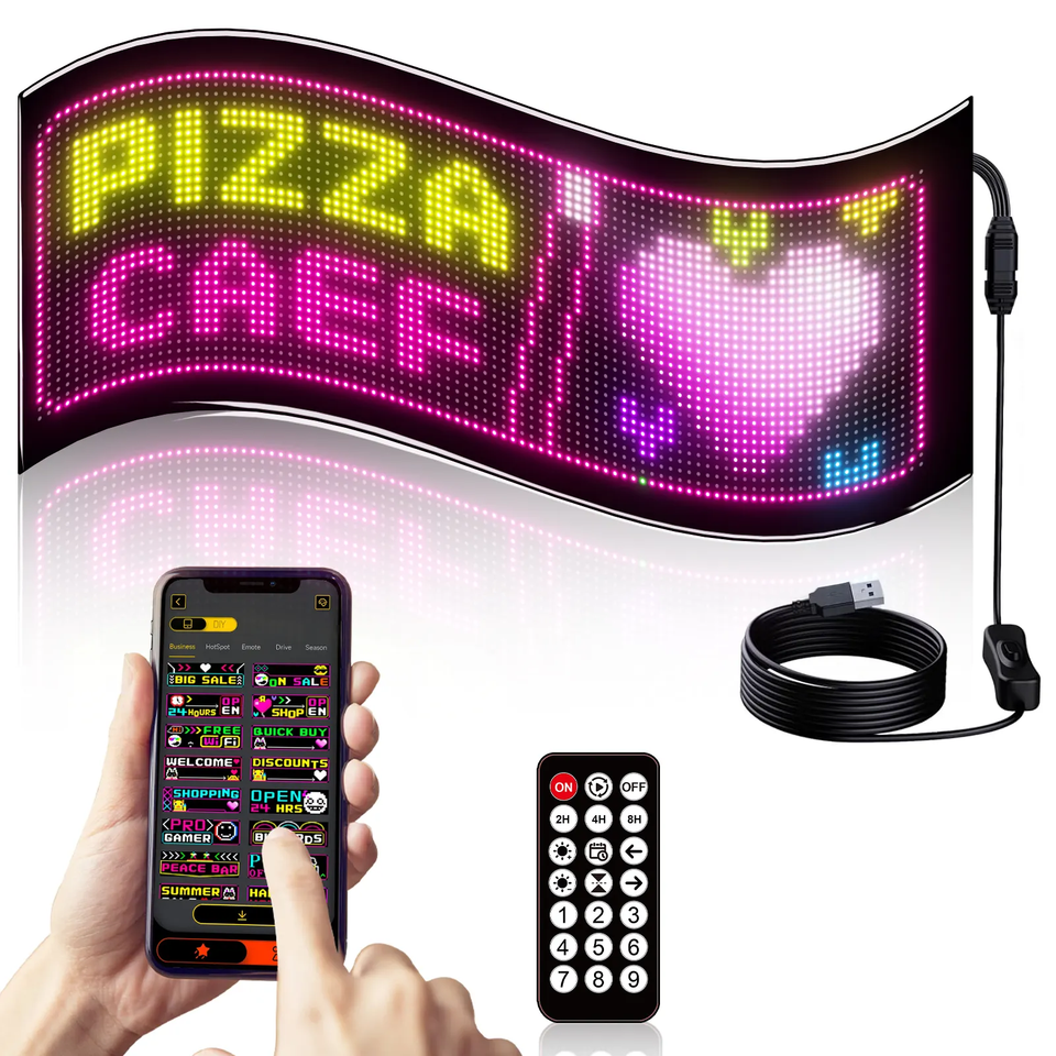 จอแสดงผล LED เมทริกซ์ 32*160 สำหรับรถยนต์ แผงยืดหยุ่น RGB ปรับแต่งลวดลายพิกเซลได้ โปรแกรมข้อความเลื่อนได้ สำหรับโฆษณา DIY แอนิเมชั่นข้อความใหม่