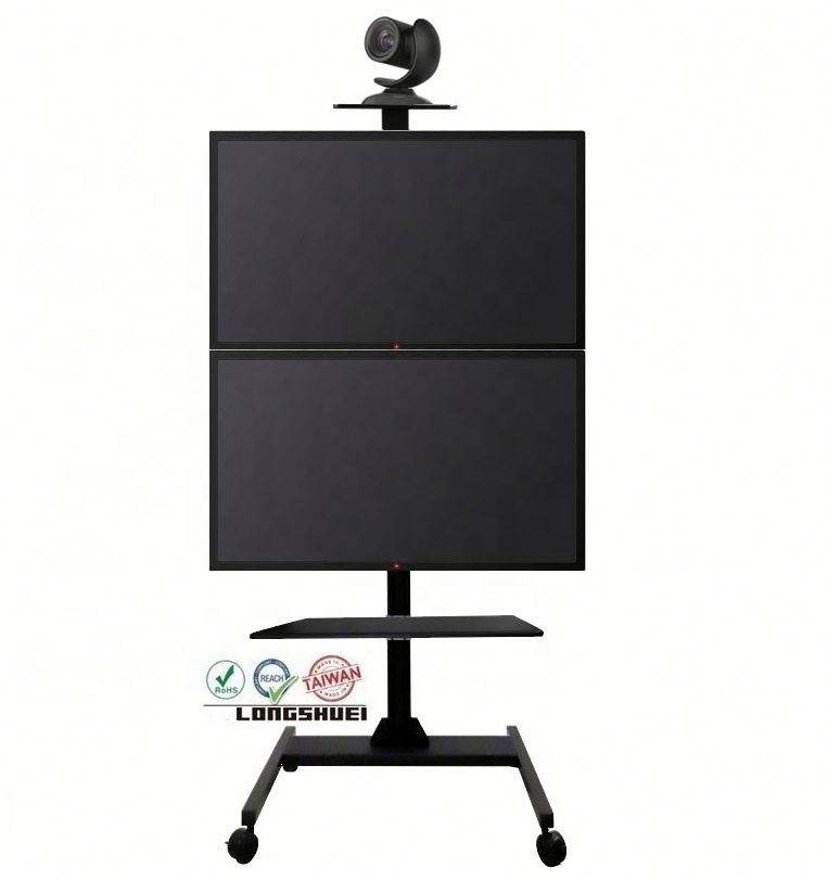 รถเข็นทีวีอลูมิเนียมขนาด32-65นิ้วพร้อมฟังก์ชันเอียงสามารถ220LBS ได้สำหรับงานสำนักงาน