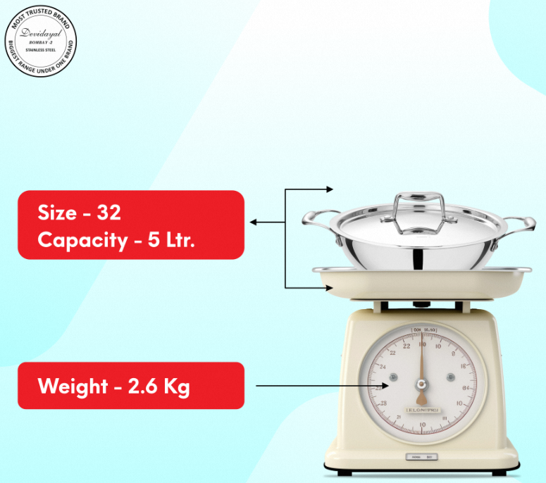 32 Cm Triply Kadhai 304 Grade Heavy Duty Stainless Steel Premium Kitchen Pan Perfect For Everyday Cooking Deep Frying