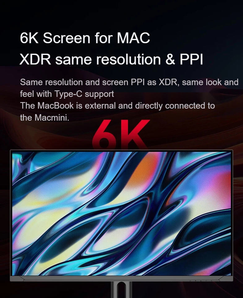 จอภาพ 32 นิ้ว 6K Retina IPS, 218PPI, HDR600, 99% DCI-P3, สำหรับงานออกแบบมืออาชีพและการตัดต่อวิดีโอ 4K/8K