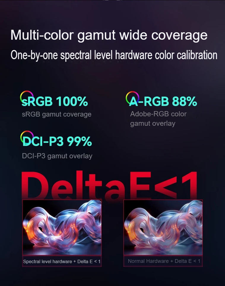 การปกปิดสี:DCI-P3 99%, AdobeRGB 88%