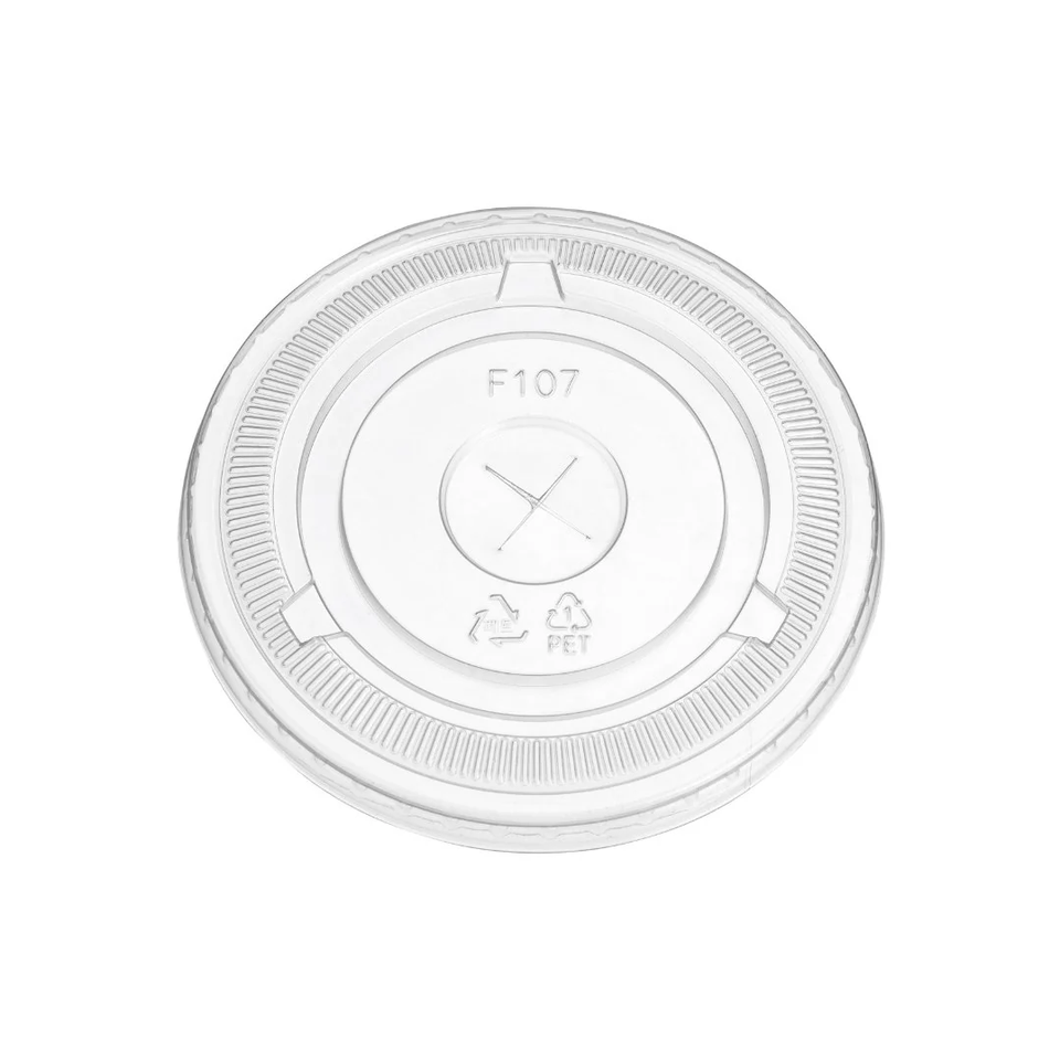 ฝาปิดแบบแบนสำหรับแก้ว PET ขนาด 32 ออนซ์ ขอบ 107 มม. แพ็ค 500 ชิ้น (50/10) ใส ปิดสนิท ป้องกันการรั่วซึม ปลอดสาร BPA ใช้กับช่องแช่แข็งได้ สำหรับเครื่องดื่มเย็น