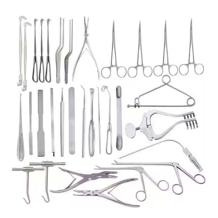 ชุดเครื่องมือผ่าตัดกะโหลกศีรษะและกระดูกสันหลังแบบแมนนวล 32 ชิ้น ทำจากสแตนเลส