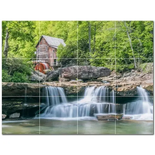 32\" X 24\" Ceramic Tile Wall Mural PT501117 Waterfalls Design with (12) 8x8 Tiles