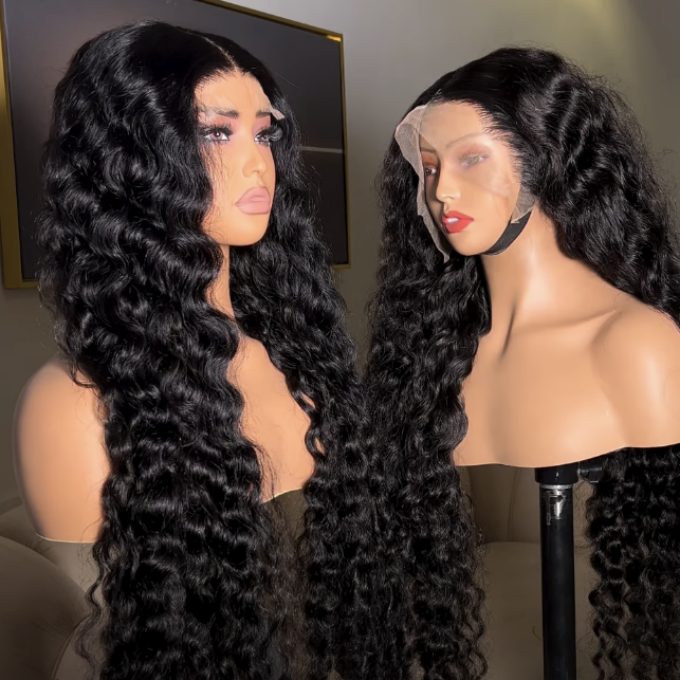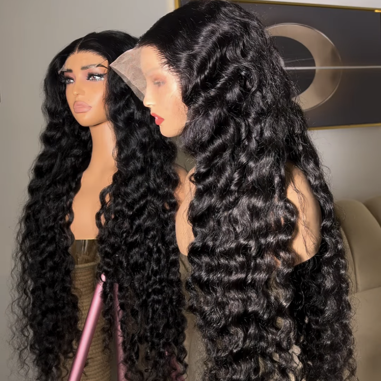 วิกผมแท้ 100% แบบลูกไม้ด้านหน้า 13x4 ขนาด 32 นิ้ว ผมหยิกธรรมชาติแบบพม่า ความหนาแน่น 180% ลอนน้ำ 15A แบบ Double Drawn