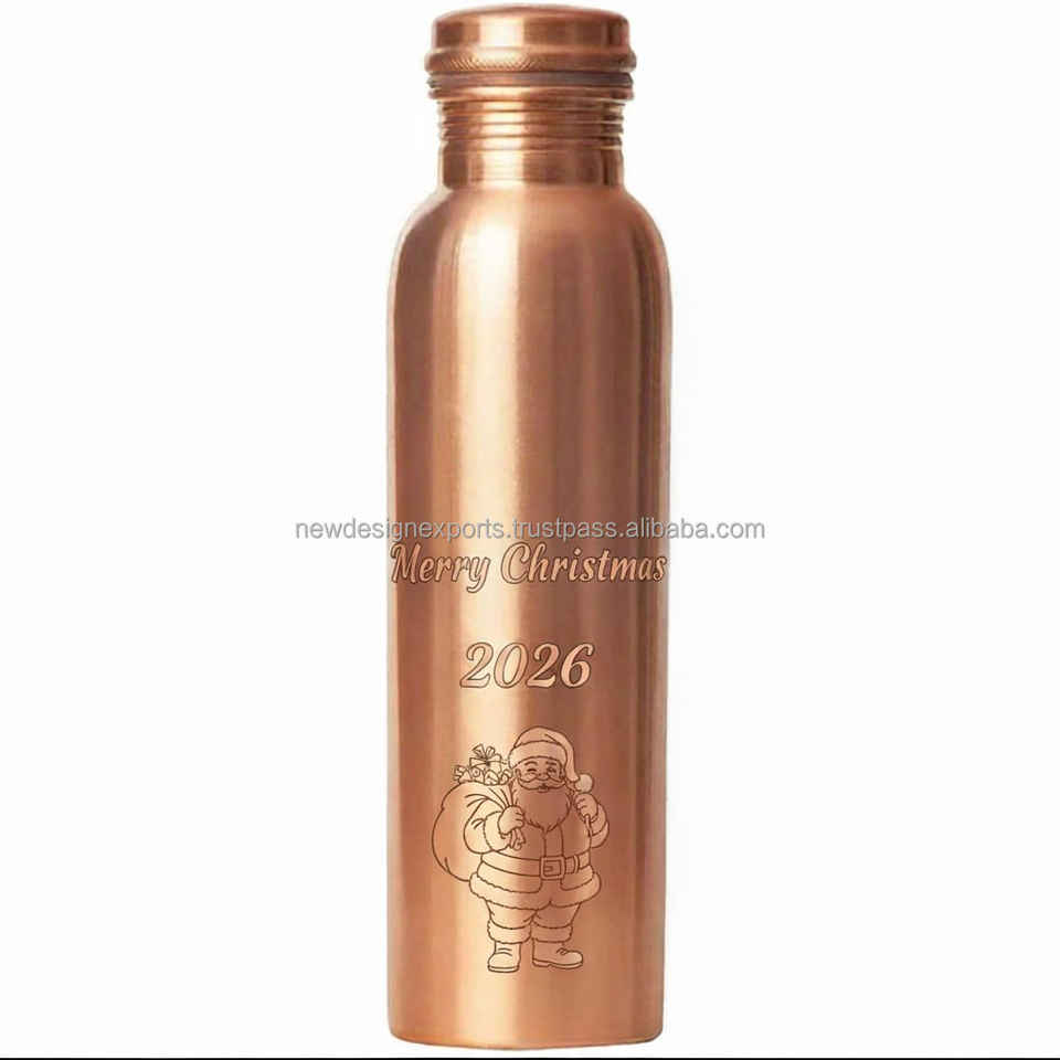 32 oz Pure Copper Water Bottle with Lid Merry Christmas & Santa Engraved