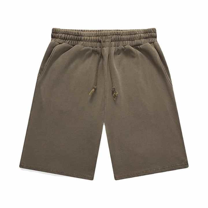 320 GSM OEM ยอมรับโลโก้ DTG เย็บปักถักร้อยหน้าจอนูนพิมพ์ผ้าฝ้าย 100% คุณภาพสูงผู้ชาย Unisex กรดล้างกางเกงขาสั้นจ๊อกกิ้ง