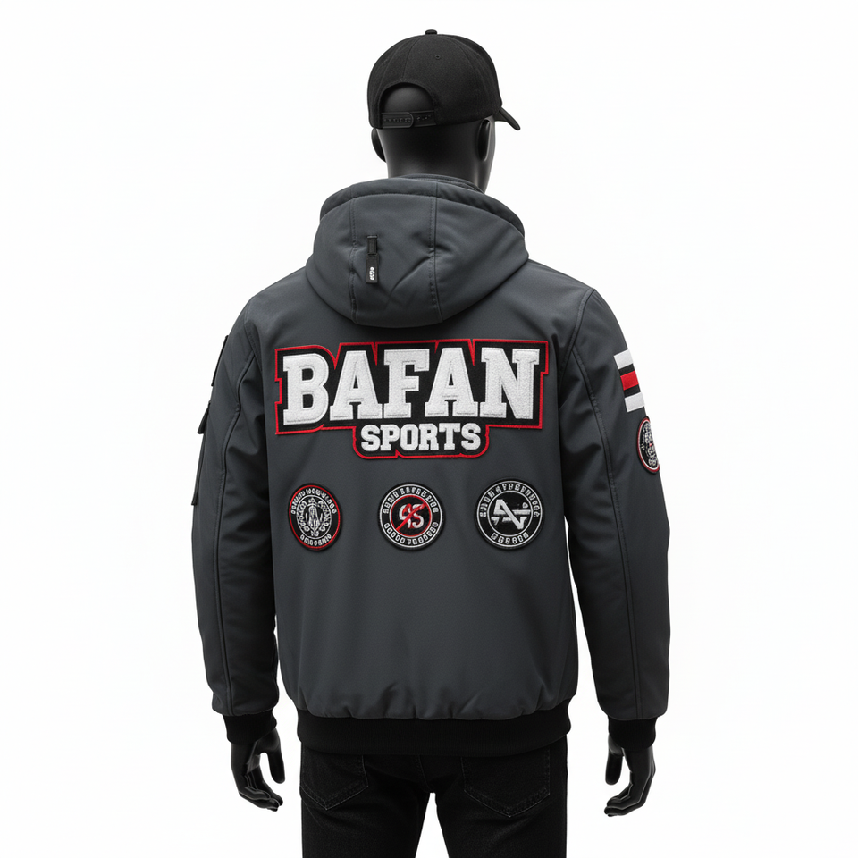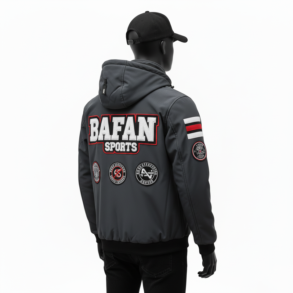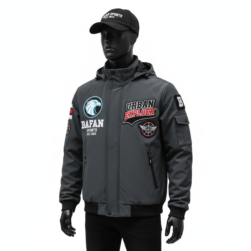 320 GSM Waterproof Windproof Dark Grey Black Panels with Custom Logo Embroidery Patch Design Softshell Jacket for man