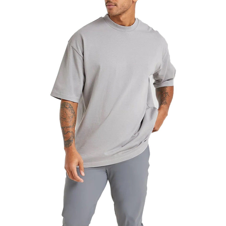320gsm เสื้อยืดสำหรับผู้ชายแฟชั่นโอเวอร์ไซส์ผ้าคอตตอน100% โอเวอร์ไซส์ปล่อยไหล่ทรงหลวมใส่กลางแจ้งเสื้อยืดผู้ชายเทใส่