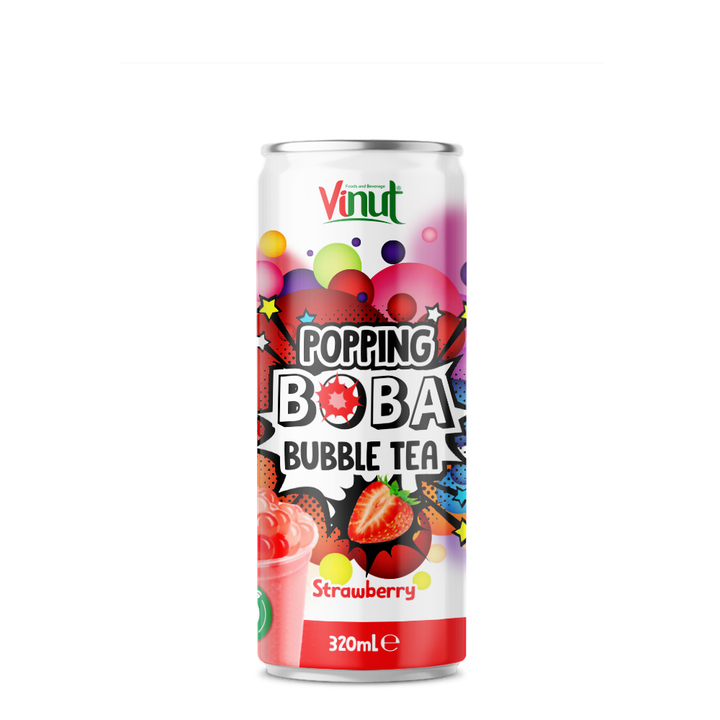 ชานมไข่มุกป๊อปปิ้ง รสสตรอว์เบอร์รี ขนาด 320 มล. ตัวอย่างฟรี พร้อมส่ง ผลิตในโรงงานเวียดนาม (OEM, ODM)