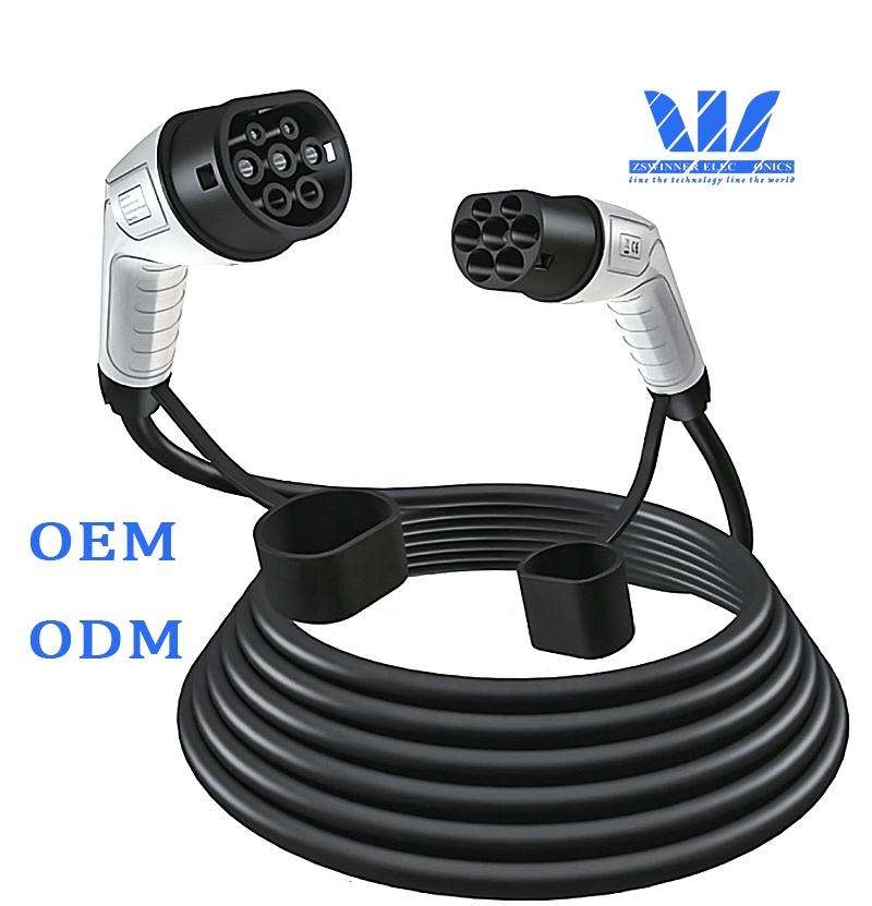 สายชาร์จรถยนต์ไฟฟ้าแบบ Type 2 to Type 2 ขนาด 16A 22kW ยาว 5 เมตร ใหม่ ได้รับการรับรองมาตรฐาน CE จากโรงงาน รับผลิตตามแบบที่กำหนด พร้อมสกรีนโลโก้