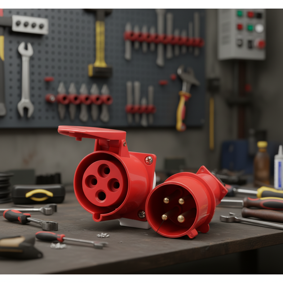 ชุดขั้วต่ออุตสาหกรรมแบบเร็ว 32A 4 ขา รุ่น H/M ขั้วต่อเร็วอุตสาหกรรม 32A ตัวผู้/ตัวเมีย ทำจากทองเหลืองชุบนิกเกิล สายยาว 5 เมตร แบบขันสกรู