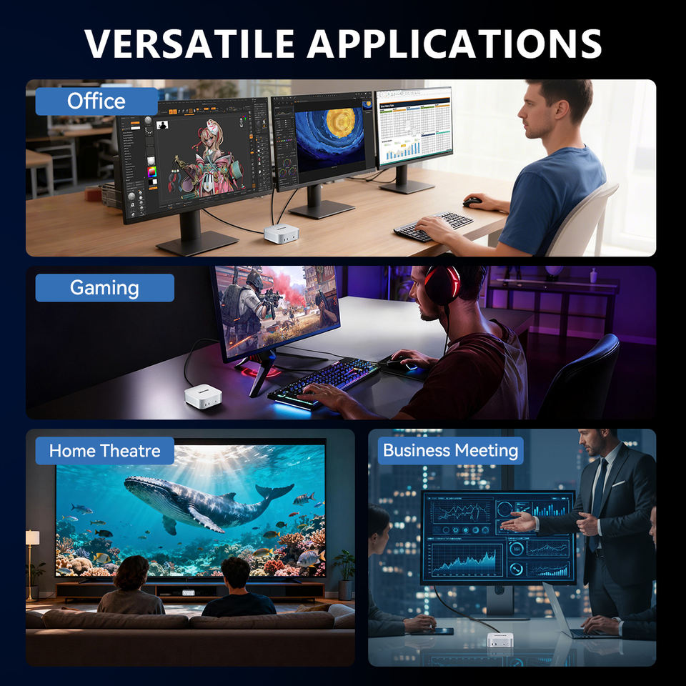 เอาท์พุทวิดีโอ:จอแสดงผลสามจอ - HDMI 2.1 * 2 + 1 Type C