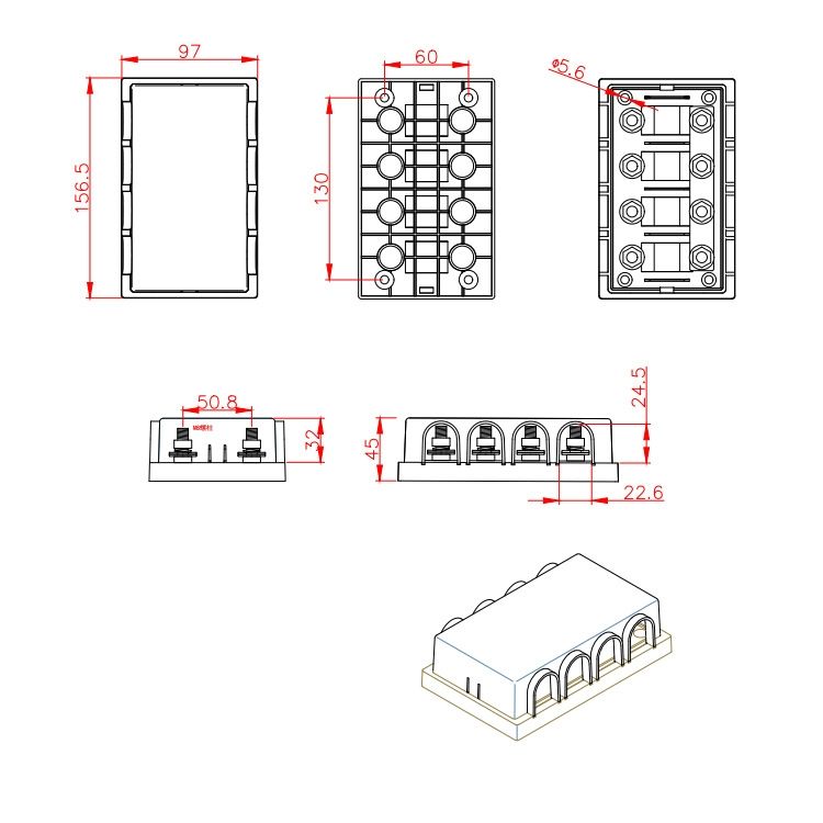 32V/58V/70V 500A 4-Wat 6-Way Bolt-On Fuse Block - Medium Fork Terminal for Car/Marine/RV Modifications 58V EV High Voltage Fuse