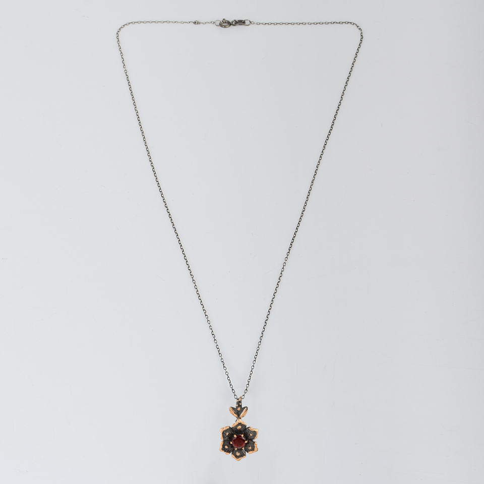 สร้อยคอโซ่ชั้นดีขนาด32X19X6มม. จี้ดีไซน์ดอกไม้พลอยโกเมนเงินสเตอร์ลิง925อัญมณีสีทองเครื่องประดับราคาถูก
