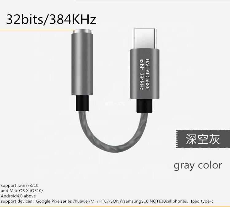 32bits/384KHz DAC Chipset Universal USB-C Type C Adapter Port to 3.5mm Aux Jack Ear/Headphone for Samsung google huawei Mi