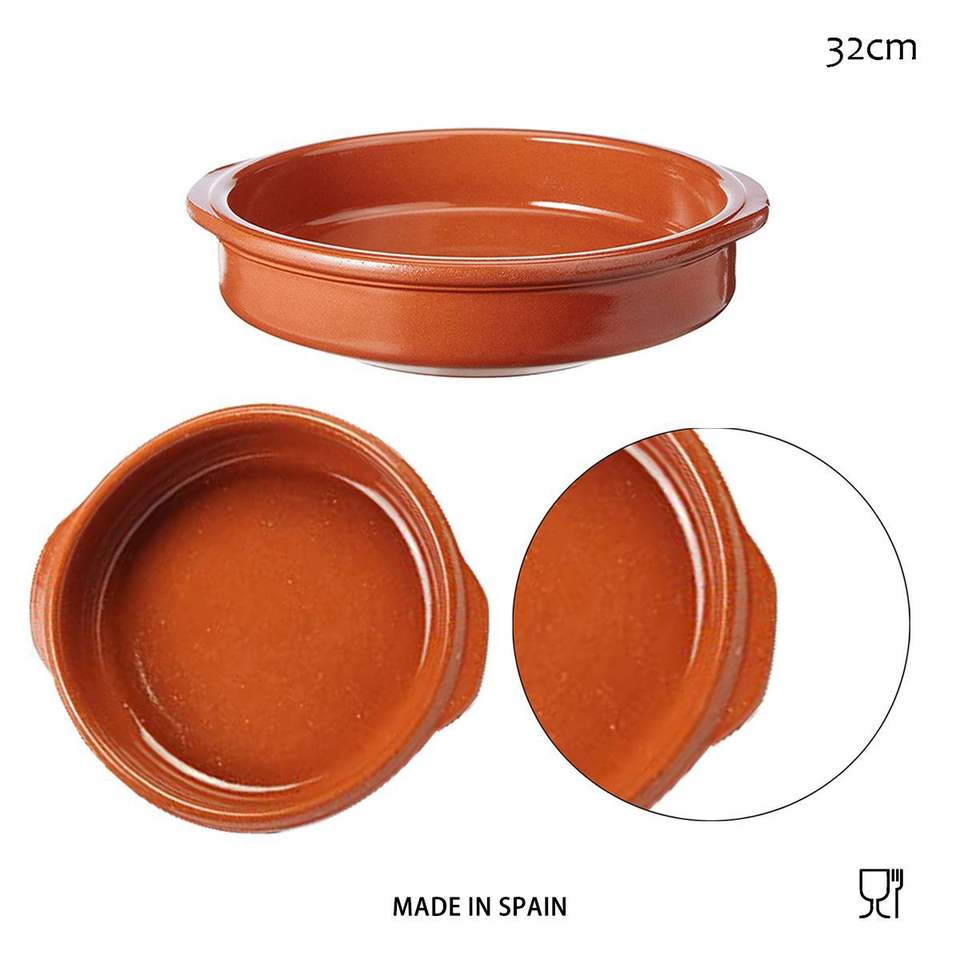 จานหม้อปรุงอาหารดินเผาทรงกลมขนาด32ซม. พร้อมที่จับสำหรับทำอาหารในบ้านหม้อร้อนเครื่องอุ่นอาหารใช้งานอื่นๆทำจากอลูมิเนียม