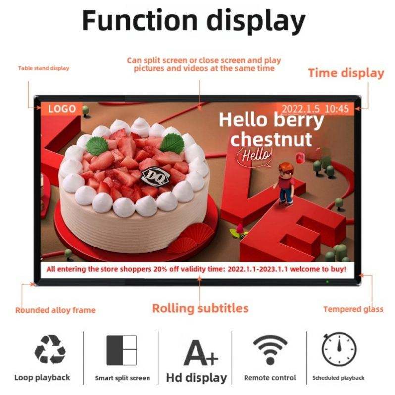 เครื่องทำโฆษณาในร่ม4K HD 32นิ้วร้านน้ำชานม/ลิฟท์/ผนัง/พื้น IP65 SDK