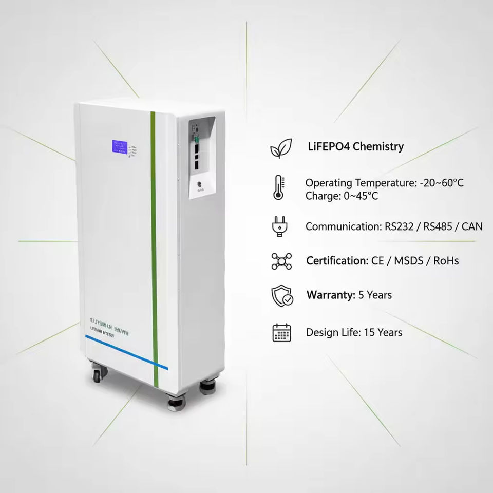 แบตเตอรี่ LiFePO4 แบบเรียงซ้อนได้ 32 กิโลวัตต์ชั่วโมง 51.2 โวลต์ พร้อมล้อเคลื่อนย้ายได้ ระบบจัดเก็บพลังงานแสงอาทิตย์แบบเคลื่อนที่ ระดับการป้องกัน IP55 ควบคุมผ่านแอปพลิเคชัน WiFi รองรับ CAN RS485 สำหรับใช้ในบ้าน ระบบไฟฟ้าสำรองฉุกเฉิน