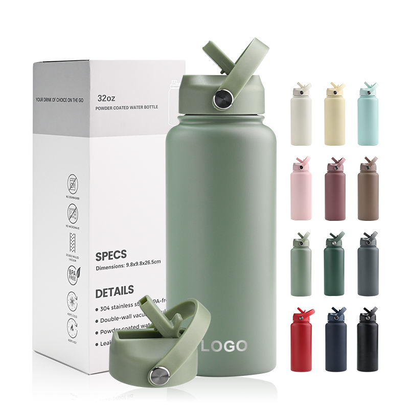กระติกน้ำเก็บความร้อนสุญญากาศสองชั้น สแตนเลส 304 ขนาด 32 ออนซ์ 40 ออนซ์ ป้องกันการรั่วซึม ปราศจากสาร BPA พร้อมหลอดดูดและปลอกหุ้ม สกรีนโลโก้ได้