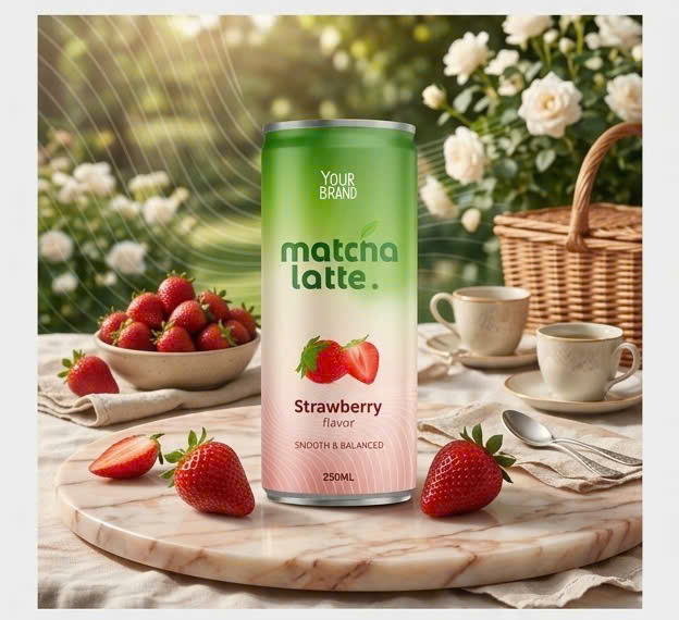 กระป๋องอะลูมิเนียม 330 มล. ชาเขียวมัทฉะลาเต้พร้อมดื่ม 9 บริกซ์ ได้รับการรับรองฮาลาล/FSSC ได้รับการรับรองมาตรฐาน BRC ISO/HACCP อายุการเก็บรักษา 18 เดือน เครื่องดื่มแทนโด