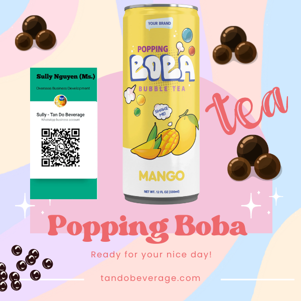 Boba popping กระป๋องขนาด330มล. ชาดำเย็นผลไม้พีชฉลากส่วนตัวมีตัวอย่างฟรีผู้ผลิตเครื่องดื่มจากเวียดนาม