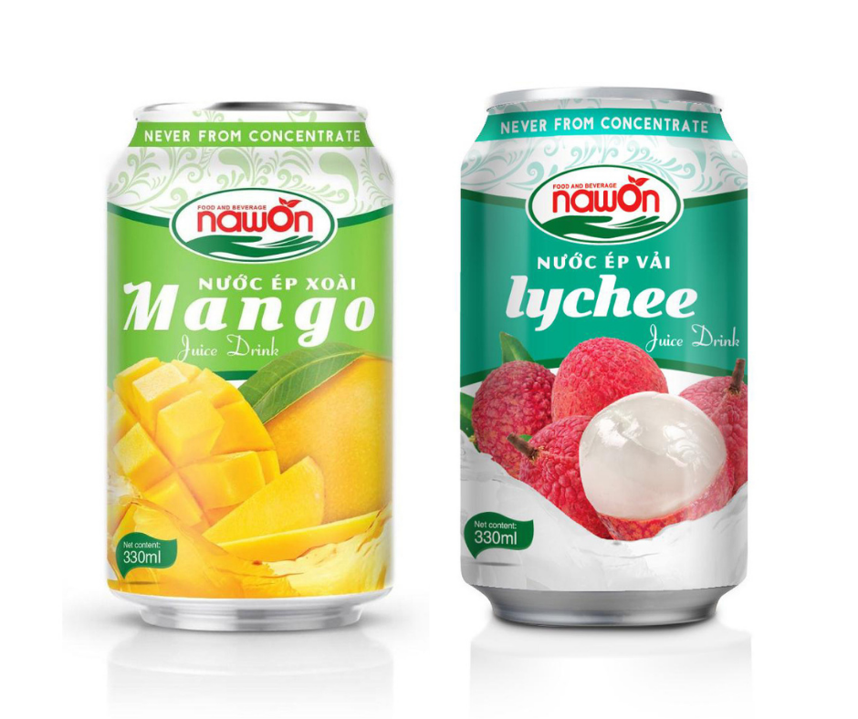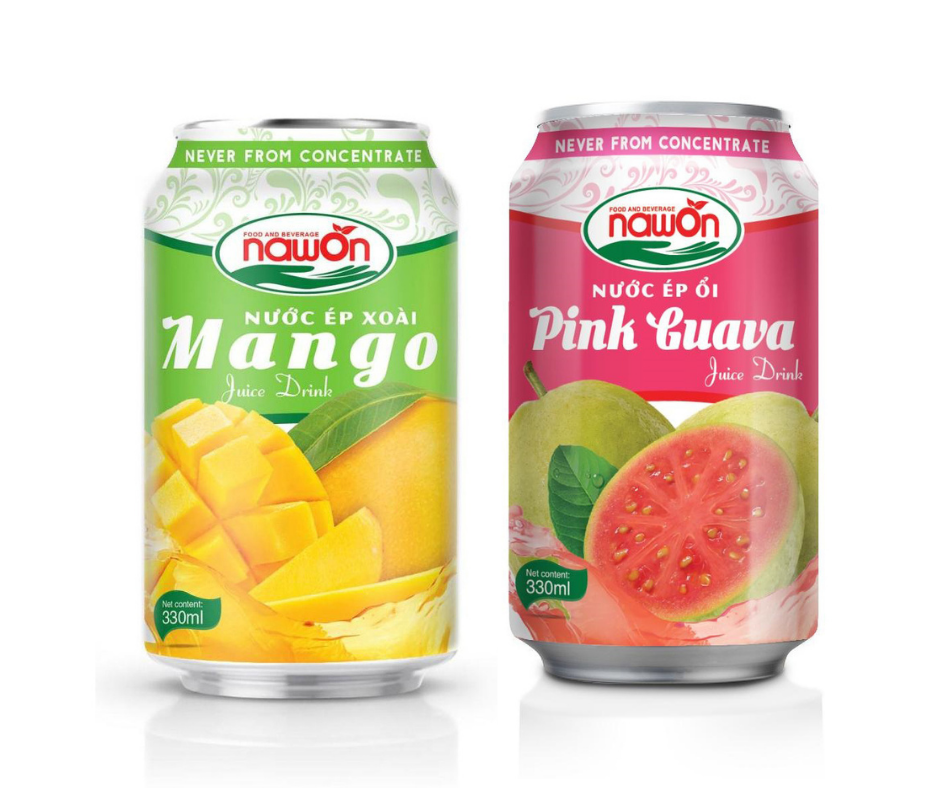 น้ำมะม่วง NFC ขนาด 330 มล. บรรจุกระป๋อง น้ำผลไม้เพื่อสุขภาพ ตัวอย่างฟรี น้ำผลไม้ราคาส่ง รับผลิตแบบ OEM NAWON