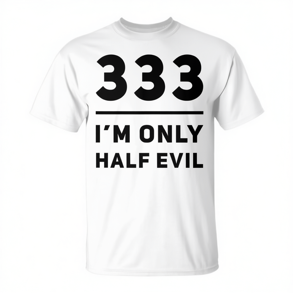 333 เสื้อยืด I'M ONLY HALF EVIL เสื้อผ้าส่งเสริมการขาย