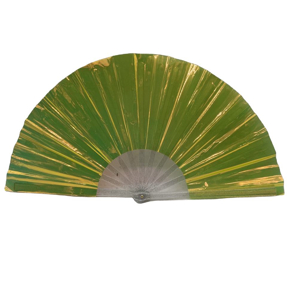 พัดสะท้อนแสงสีรุ้งขนาด 33 ซม. พัดพลาสติกนีออน PVC ขนาดใหญ่ สำหรับงานปาร์ตี้เรฟ